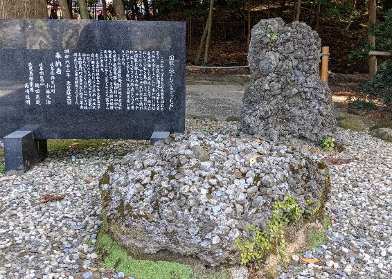 また、境内には、国家「君が代」に詠まれる「さざれ石」が奉納されています。「さざれ石」とは、小さな小石が長い年月をかけて集まり、石灰岩などによって固まって一つの大きな岩(巌=いわお)となったものです。これは、国家の繁栄と長寿を象徴する縁起の良い石として知られています。