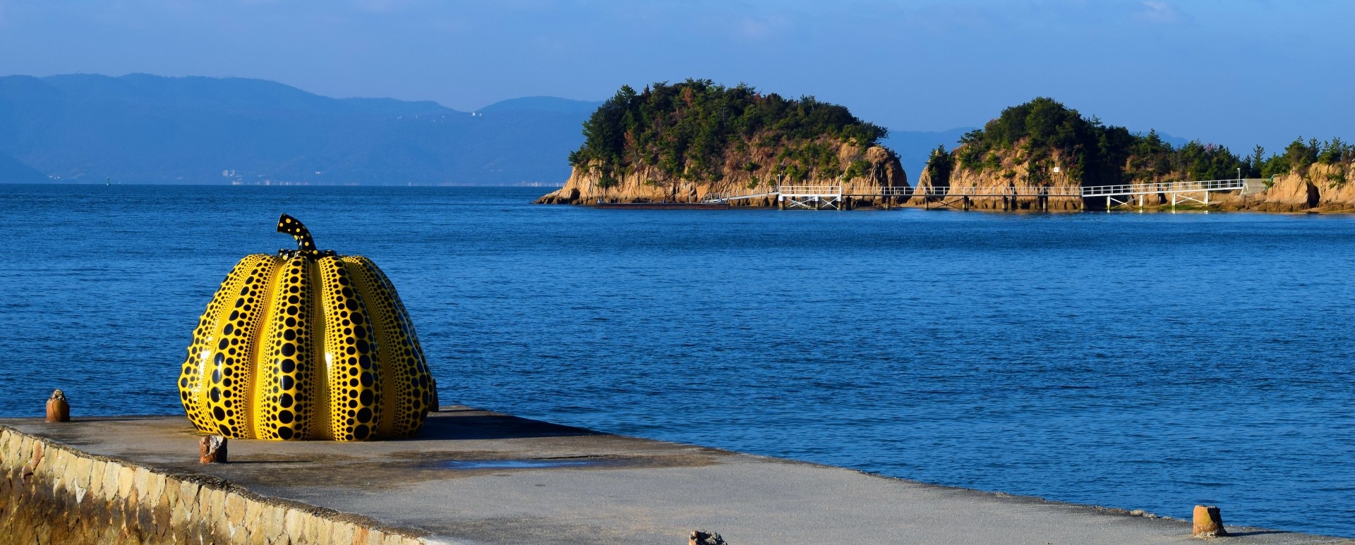 直島のシンボルといえば、宮浦港で出迎えてくれる草間彌生の《赤かぼちゃ》、そしてベネッセハウス周辺の海岸に佇む《南瓜》(黄色いかぼちゃ)です。 青い海と空、緑の島々を背景に、強烈な存在感を放つ水玉模様のかぼちゃ。現代アートのポップさと、瀬戸内の牧歌的な風景という、相反する要素が奇跡的にマッチしています。中に入って写真を撮ったり、夕日をバックにシルエットを眺めたりと、時間帯によって様々な楽しみ方ができます。