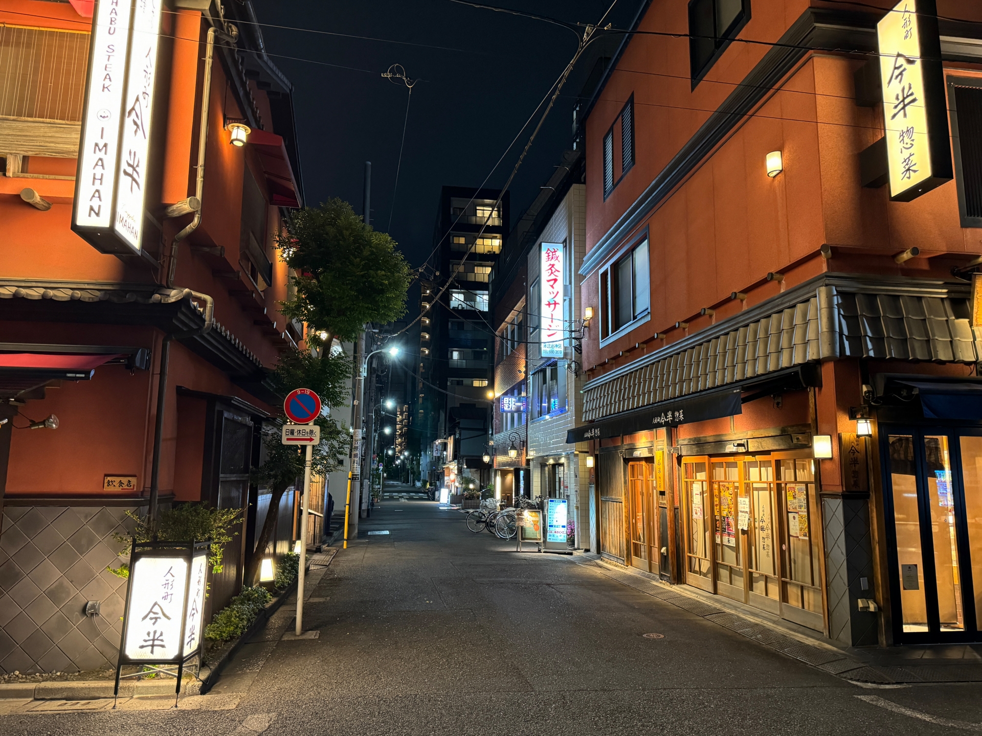 人形町は、東京メトロ日比谷線・都営浅草線が乗り入れており、東京駅や銀座からのアクセスが非常に便利です。周辺には甘酒横丁など、散策を楽しめるスポットも多く、食事の前後に日本の伝統的な街並みを満喫することができます。