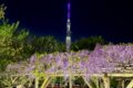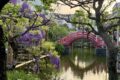 • 藤棚とスカイツリー 4月下旬から5月上旬にかけて、境内の藤棚が一斉に開花します。池に映る紫色の藤と、遠景にそびえる現代の塔・スカイツリーが織りなす景色は、まさに「東京の新旧の名所」が融合した絶景です。