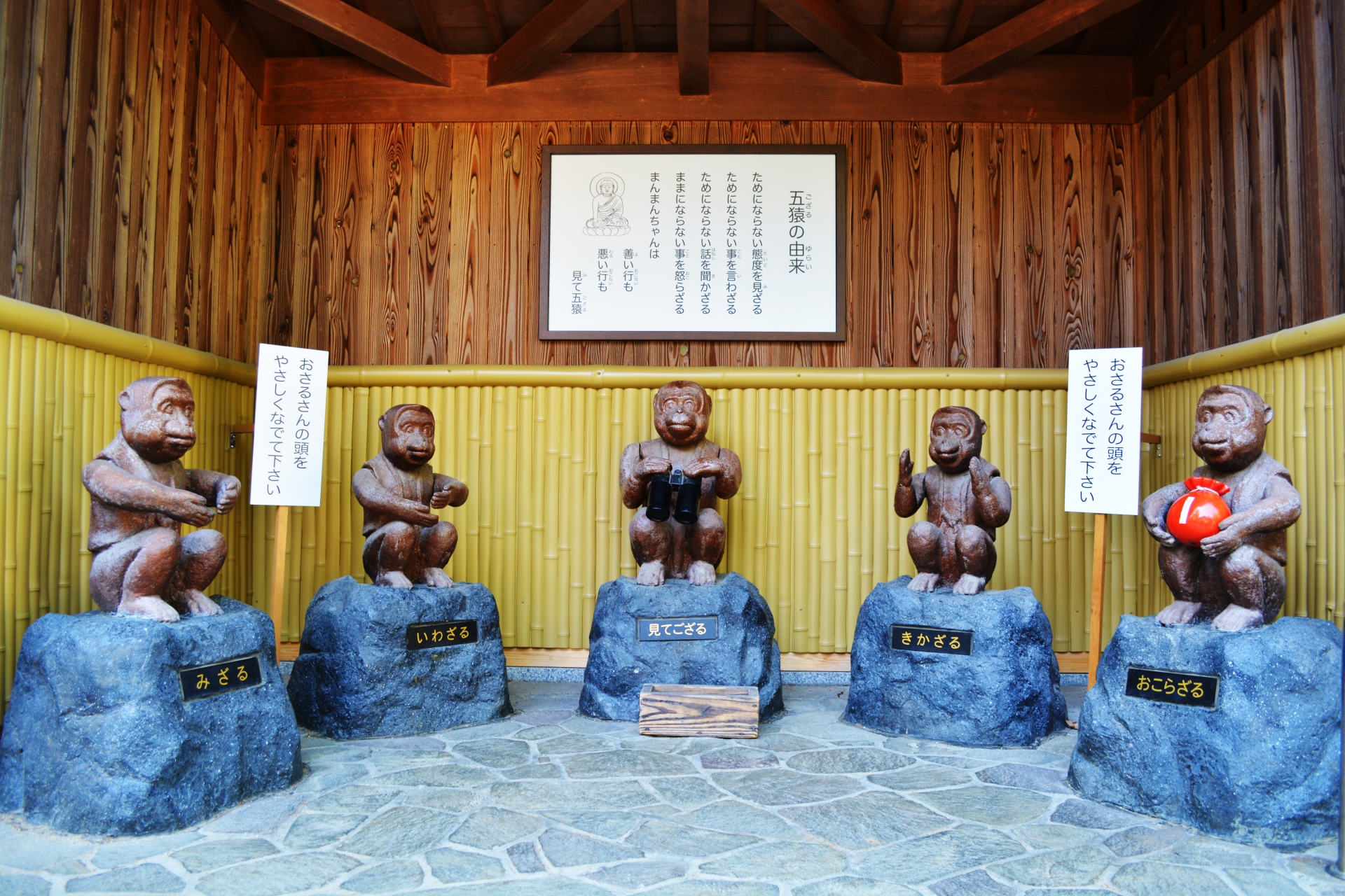 面白おかしい像(現代の工夫): 「五猿(見ざる、言わざる、聞かざる、見てござる、ござる)」や、頭を撫でると鳴く「きんぷんわらべ」など、参拝者が笑顔になれる仕掛けが境内のあちこちにあります。